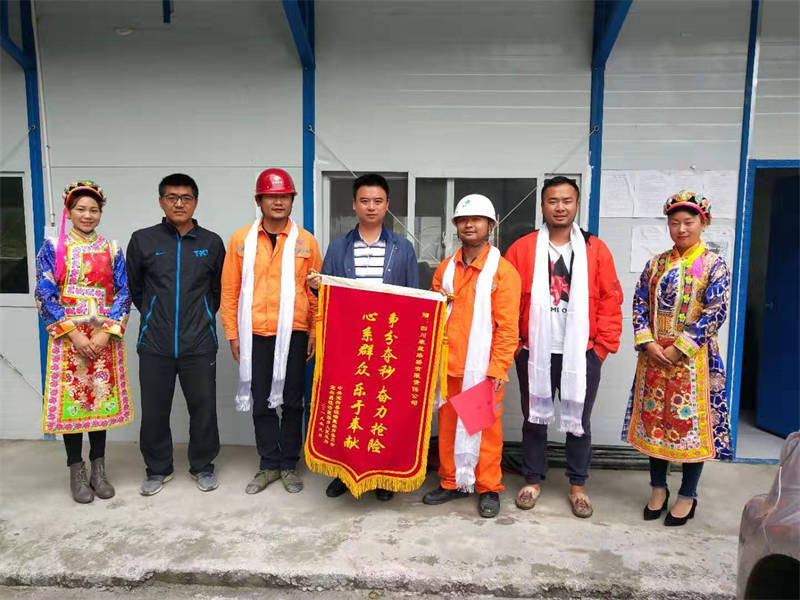 9月10日,中共寶興縣磽磧藏族鄉(xiāng)委員會、寶興縣磽磧藏族鄉(xiāng)人民政府敲鑼打鼓將一面“爭分奪秒,奮力搶險;心系群眾,樂于奉獻”的十六字錦旗和一封感謝信送到了雅安交建集團路橋公司寶興駐地。表達了寶興人民對交建集團在“8·22”特大洪災抗洪搶險中為當地老百姓做實事、解危難的感激之情。