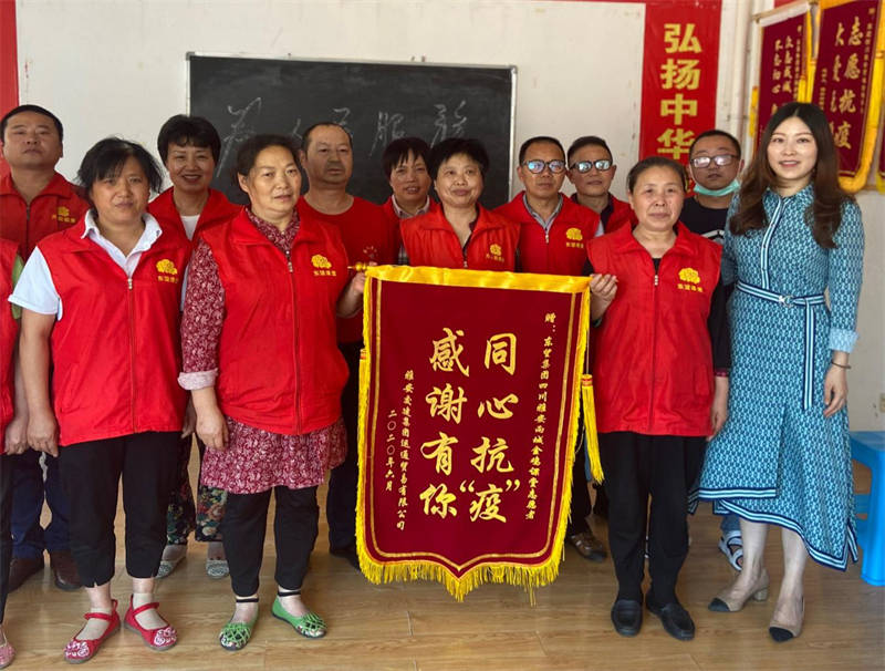 “謝謝你們?cè)谝咔榉揽仄陂g所做的努力,辛苦了!”6月3日下午,運(yùn)通公司副總經(jīng)理李巧頔將“同心抗‘疫’感謝有你”的錦旗,送到東望集團(tuán)雅安金雞課堂志愿者手中,感謝他們?cè)谘虐不疖囌疽咔榉揽毓ぷ髦兴冻龅男量嗪团Α?/span>