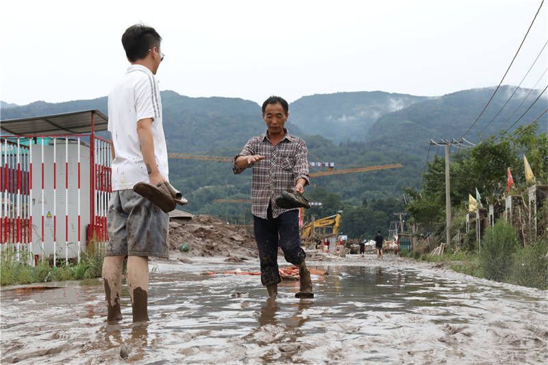 8月18日下午,在草壩青衣江大橋建設(shè)現(xiàn)場,項(xiàng)目部外的院壩、工地附近的道路,均覆蓋著厚厚的淤泥!白蛲砭o急撤離,我的車停在河邊,也沒來得及開走,現(xiàn)在都沒找到!币荒樒v的李勁松告訴記者,雖然洪水漲勢迅猛,但他們撤離之前,提前通知了電力部門斷電,否則若有人再次靠近洪水,將面臨觸電的風(fēng)險(xiǎn)。