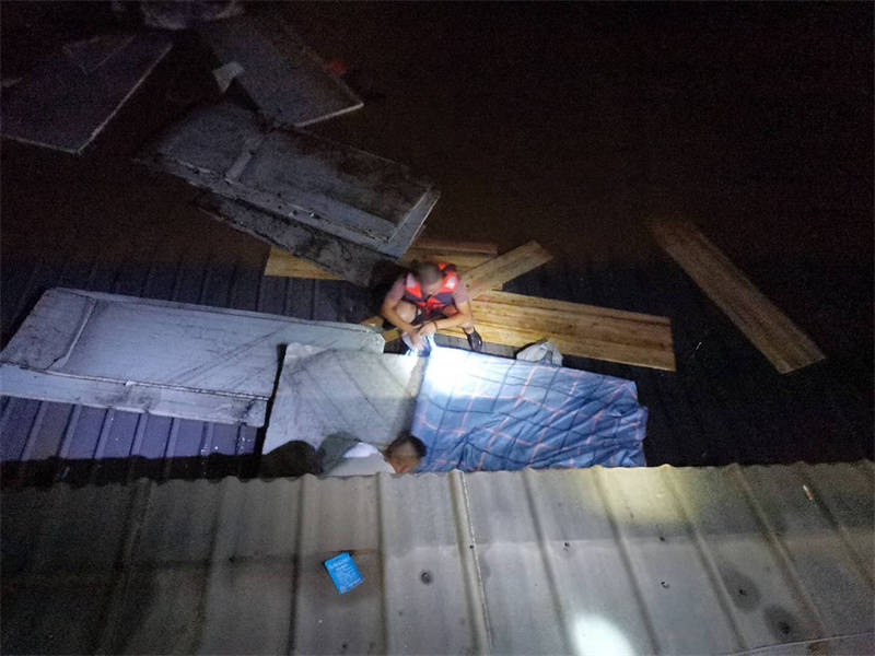 “感謝3名值班人員及時(shí)打電話通知我,否則后果不堪設(shè)想!焙喚纯f,回想起昨晚的情形,心里還是有些后怕。當(dāng)時(shí),他接到值班人員電話后,發(fā)現(xiàn)門衛(wèi)室外的洪水已經(jīng)逼近脖子,無法順利撤離,洪水漲勢又快,不一會兒,他只得爬上門衛(wèi)室頂端才能避免被水淹沒。后來,洪水沖來了一棵樹,簡敬奎借助這棵樹慢慢轉(zhuǎn)移到了附近一棵較高大的樹上繼續(xù)躲避,直至黃志和方華軍前來營救。
