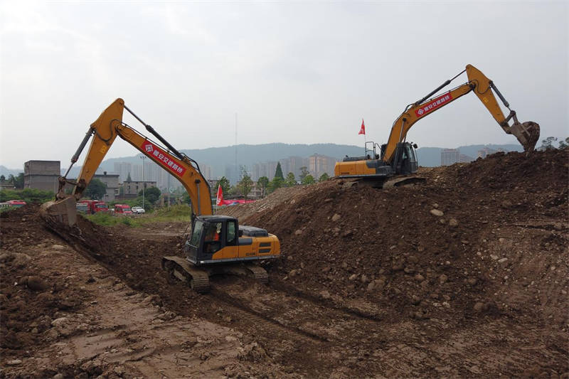 演習模擬了四川突發(fā)7.5級地震,災區(qū)房屋倒塌損毀嚴重,造成大量人員被壓被困,當?shù)仉娏Α⑼ㄐ、道路、橋梁部分中斷。交建路橋鐵軍以抗震救災全流程、全要素為主線,按照統(tǒng)一指揮、綜合協(xié)調(diào)、分級負責、屬地為主的原則,在指揮部的統(tǒng)一調(diào)度下,派出21名救援人員,出動挖掘機5臺、裝載機1臺,緊急實施道路搶修保通、架設水面浮橋等工作,圓滿完成基礎設施搶修和道路搶通科目演習任務。