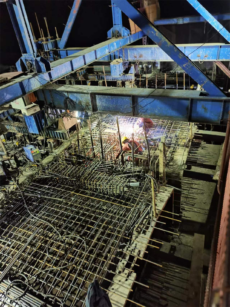 為確保項目高效推進,交建路橋搶抓黃金工期,共投入14臺設備、70余人,加班加點、挑燈夜戰(zhàn)綁扎K3+415成雅高速跨線大橋邊跨現(xiàn)澆段鋼筋。工地現(xiàn)場燈火通明,機械轟鳴,施工人員揮汗如雨,一派繁忙景象,工程建設井然有序。此次搶工,為后續(xù)項目施工積蓄了發(fā)展動能,同時也保障了項目總體目標的實現(xiàn)。