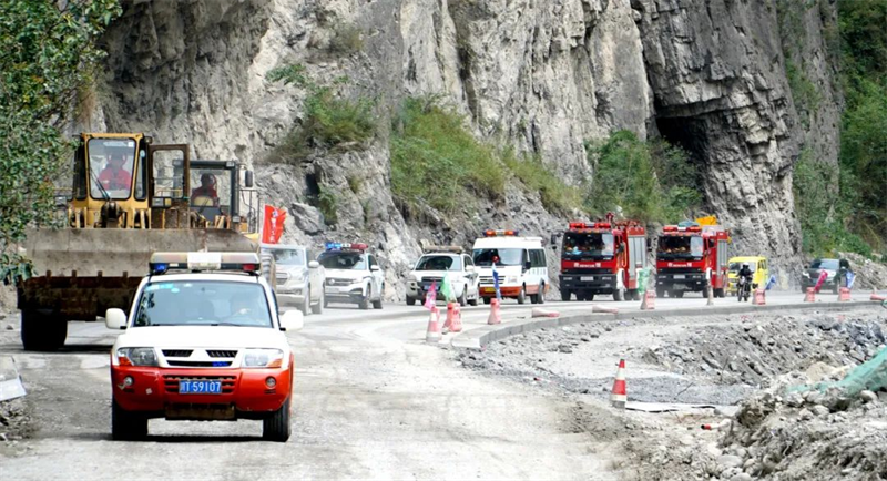此次演練模擬地震造成山體垮塌、引發(fā)泥石流,造成交通道路中斷,急需搶通“生命通道”,交建路橋公司積極搶險救援力量參與現(xiàn)場救援、打通“生命通道”、道路保通保暢等任務(wù)。