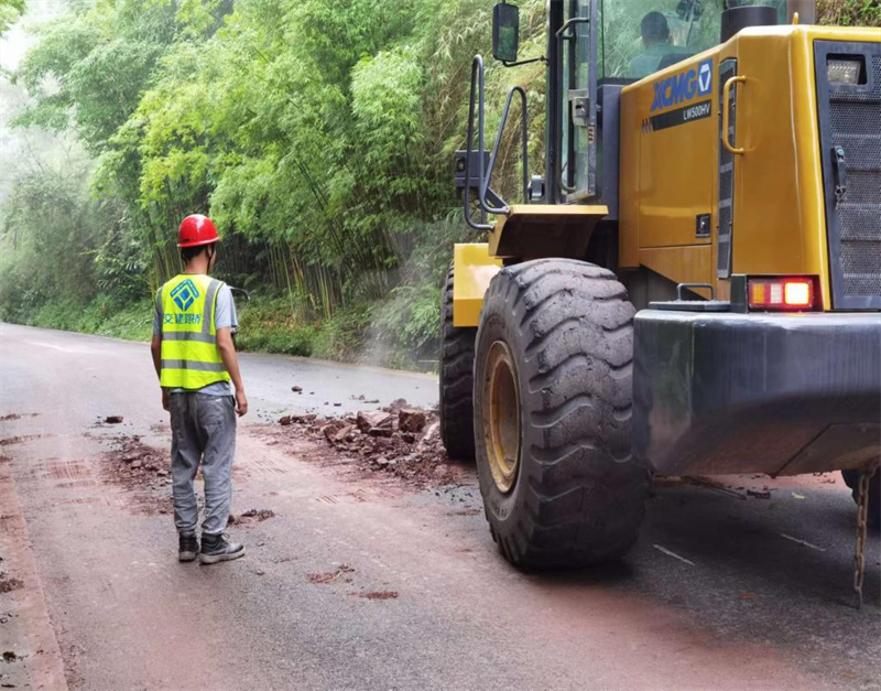 災(zāi)情發(fā)生后,交建路橋公司省道104改建工程項(xiàng)目部應(yīng)望魚鎮(zhèn)抗洪搶險應(yīng)急指揮部要求,立即啟動抗洪搶險應(yīng)急預(yù)案,由20余名現(xiàn)場施工人員組成的搶險隊伍兵分三路,投入挖機(jī)2臺、裝載機(jī)2臺、水車1臺、皮卡車2輛,圓滿完成雅趙路多處塌方和曹萬村、嫣溪溝村等村道泥石流及邊坡坍塌土石方清理工作,及時恢復(fù)道路交通,受到當(dāng)?shù)攸h委政府和村民一致好評。