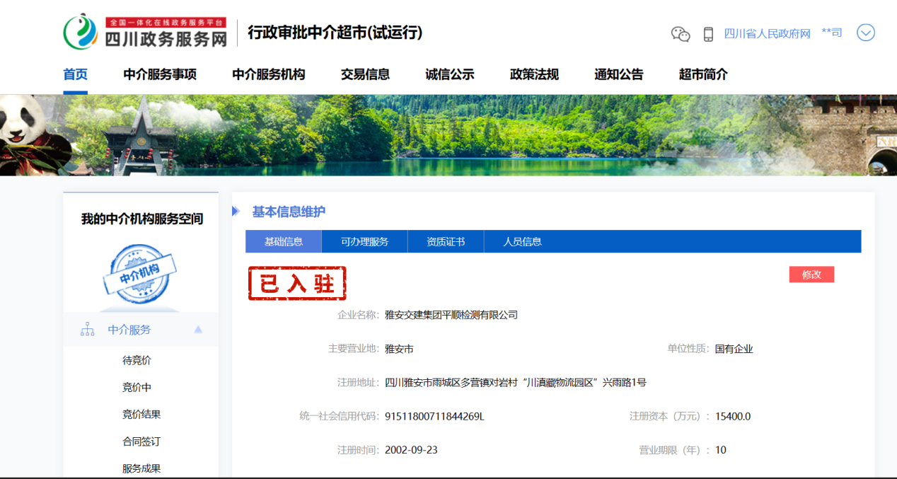 為進(jìn)一步深化“放管服”便民服務(wù),加強(qiáng)行政審批中介服務(wù)事項(xiàng)管理,規(guī)范中介服務(wù)行為,經(jīng)雅安市雨城區(qū)運(yùn)管所資格審核通過,近日,雅安交建集團(tuán)平順檢測(cè)有限公司正式入駐四川政務(wù)服務(wù)網(wǎng)行政審批中介超市。