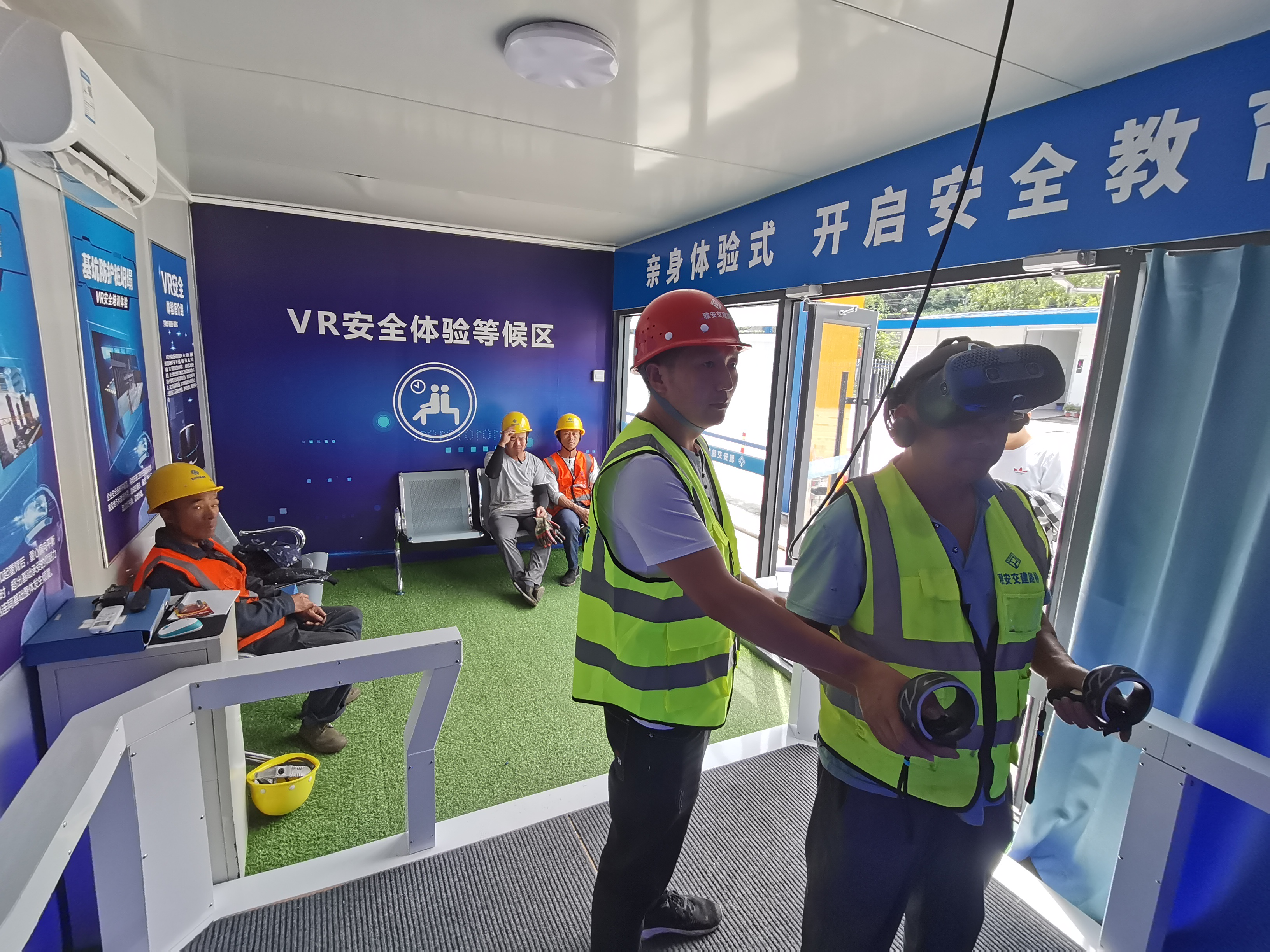 針對各在建項目勞務施工人員占大多數(shù)且安全意識薄弱、自我保護意識不足實際,路橋公司結合開展“安全生產(chǎn)月”系列活動,分批次組織各在建項目作業(yè)人員進行安全VR體驗培訓,利用VR技術打造1:1的虛擬培訓場景,將抽象的理論知識變得直觀形象,受訓者以第一視角“親歷”高空作業(yè)、高空塔吊、機械操作等危險場景,帶來高度真實感的沉浸式體驗,切實讓工人在VR培訓中通過視覺、聽覺、觸覺反饋,形成強烈的心理震懾作用,讓現(xiàn)場施工作業(yè)人員最大限度增強安全防范意識。