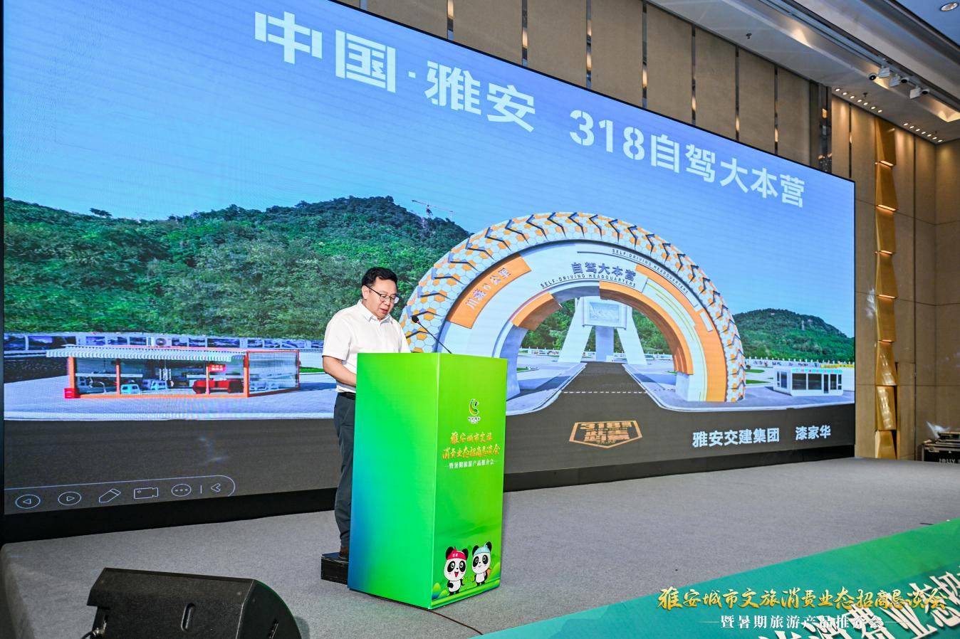 6月25日,雅安城市文旅消費(fèi)業(yè)態(tài)招商懇談會(huì)暨暑期旅游產(chǎn)品推介會(huì)在成都舉行,交建集團(tuán)投資建設(shè)的“中國(guó)·雅安318自駕大本營(yíng)”項(xiàng)目亮相大會(huì)。