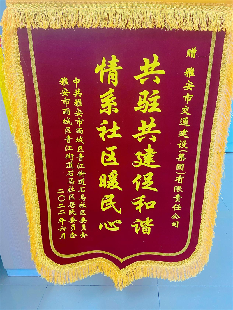 6月29日,雅安市交建集團(tuán)作為石馬社區(qū)結(jié)對共建先進(jìn)單位,受邀參加了中共雅安市雨城區(qū)青江街道石馬社區(qū)工作委員會組織召開的慶祝建黨101周年大會暨2022年度先進(jìn)表彰大會,石馬社區(qū)黨委書記周麗娟同志為交建集團(tuán)贈送“情系社區(qū)解難事 共駐共建促和諧”錦旗。