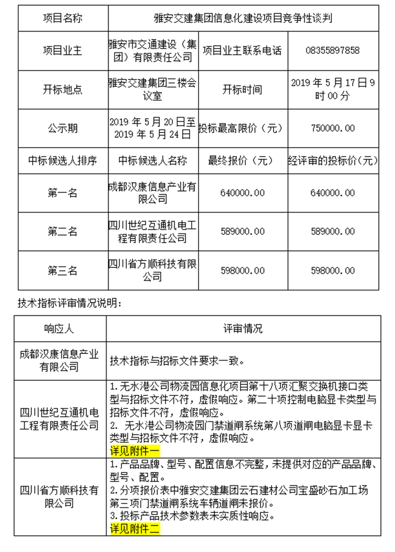 雅安交建集團(tuán)信息化建設(shè)項(xiàng)目競爭性談判評(píng)標(biāo)結(jié)果公示