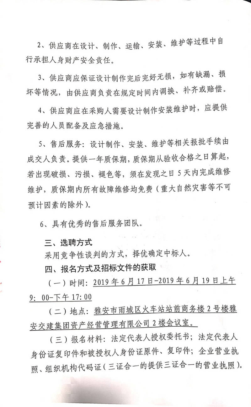 雅安交建集團(tuán)資產(chǎn)經(jīng)營管理有限公司關(guān)于選聘成雅高速金雞關(guān)互通及服務(wù)區(qū)項目(雨名快速通道)磨坊溝已征地范圍打圍項目競爭性談判公告