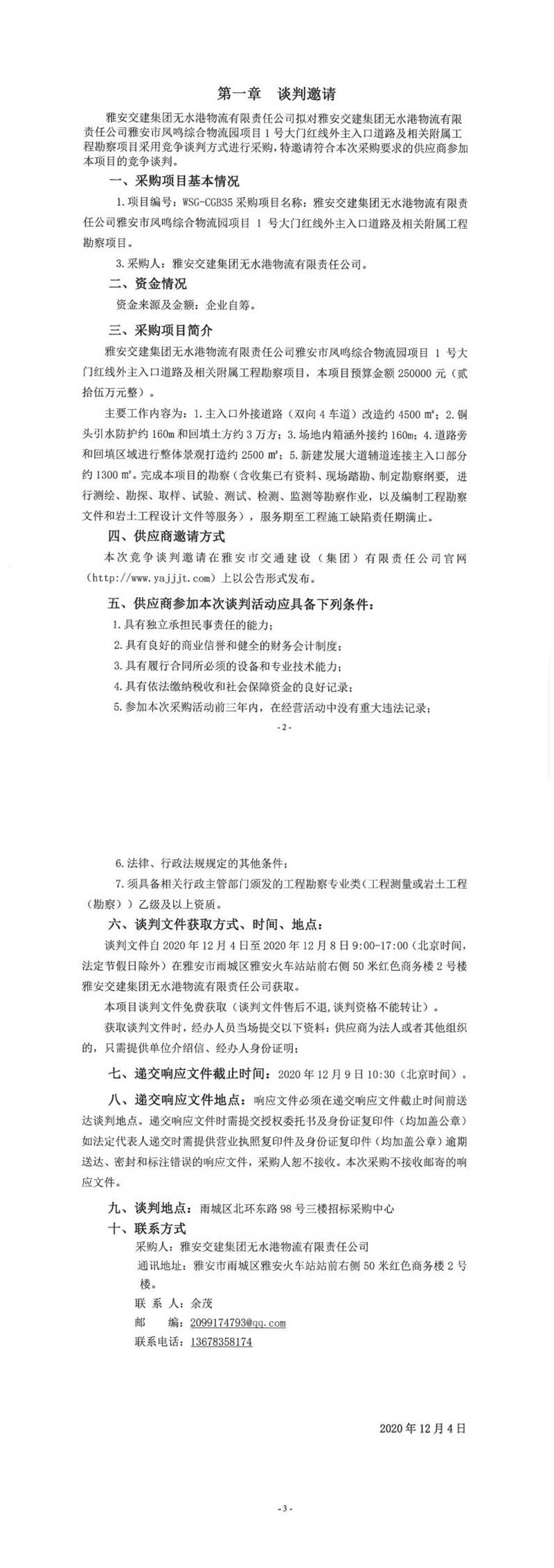 雅安交建集團(tuán)無水港物流有限責(zé)任公司雅安市鳳鳴綜合物流園項目1號大門紅線外主入口道路及相關(guān)附屬工程勘察項目談判公告