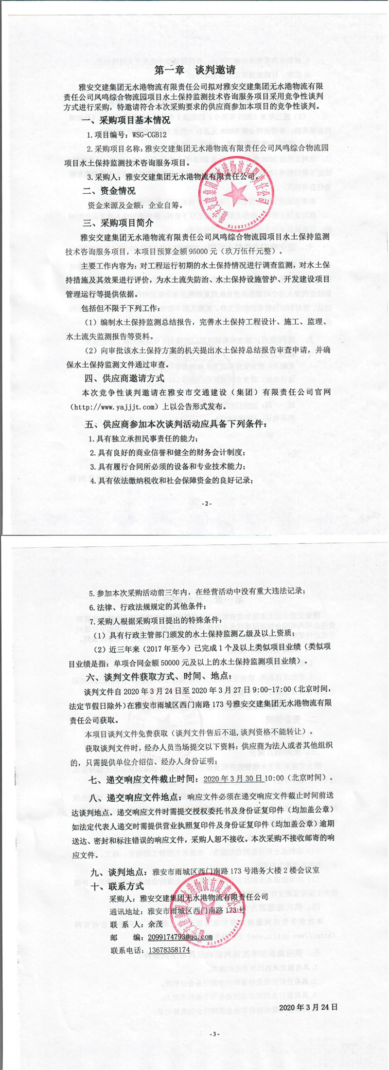 雅安交建集團(tuán)無水港物流有限責(zé)任公司鳳鳴綜合物流園項(xiàng)目水土保持監(jiān)測(cè)技術(shù)咨詢服務(wù)項(xiàng)目競(jìng)爭(zhēng)性談判公告