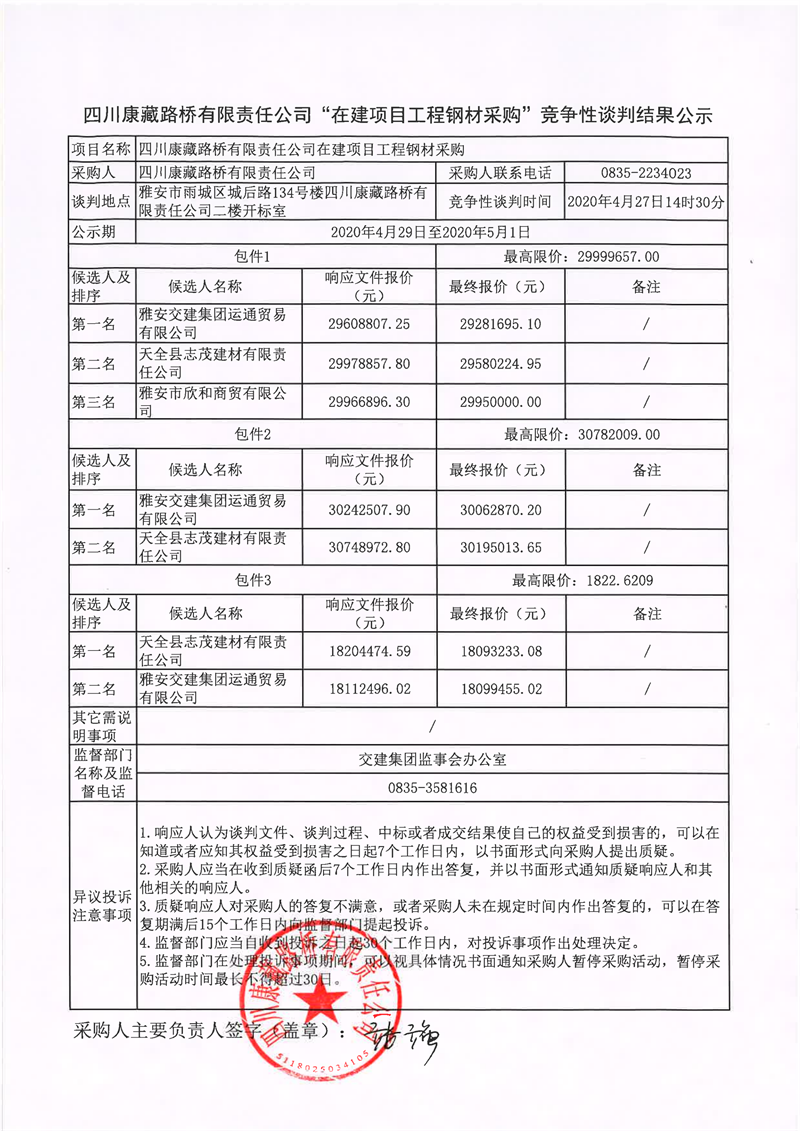 四川康藏路橋有限責(zé)任公司“在建項(xiàng)目工程鋼材采購(gòu)”競(jìng)爭(zhēng)性談判結(jié)果公示
