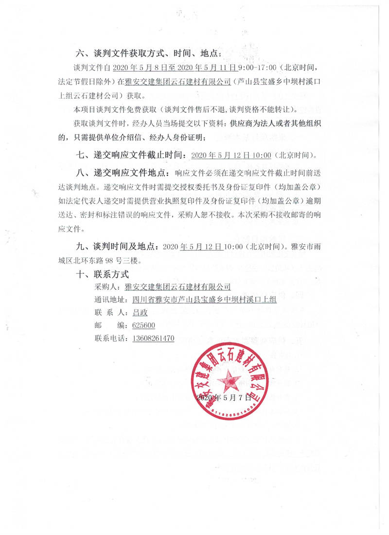 雅安交建集團(tuán)云石建材有限公司生產(chǎn)設(shè)備圓錐破采購項目競爭性談判(第二次)公告