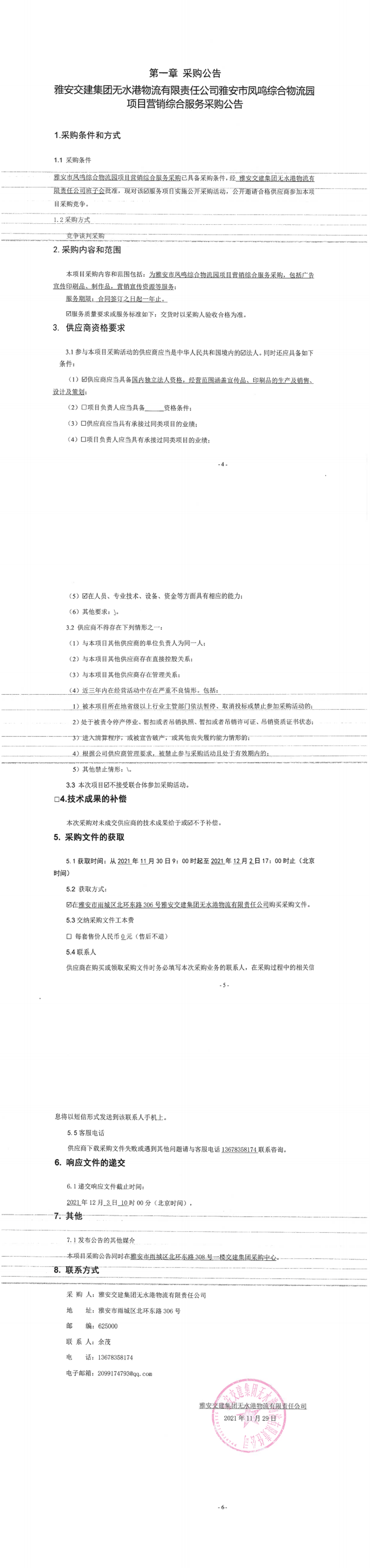 雅安交建集團(tuán)無水港物流有限責(zé)任公司雅安市鳳鳴綜合物流園項目營銷綜合服務(wù)采購公告