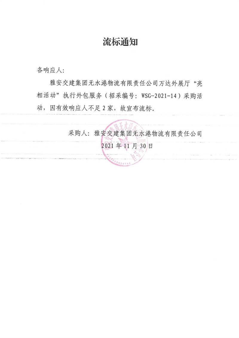 雅安交建集團(tuán)無水港物流有限責(zé)任公司萬達(dá)外展廳“亮相活動”執(zhí)行外包服務(wù)流標(biāo)通知