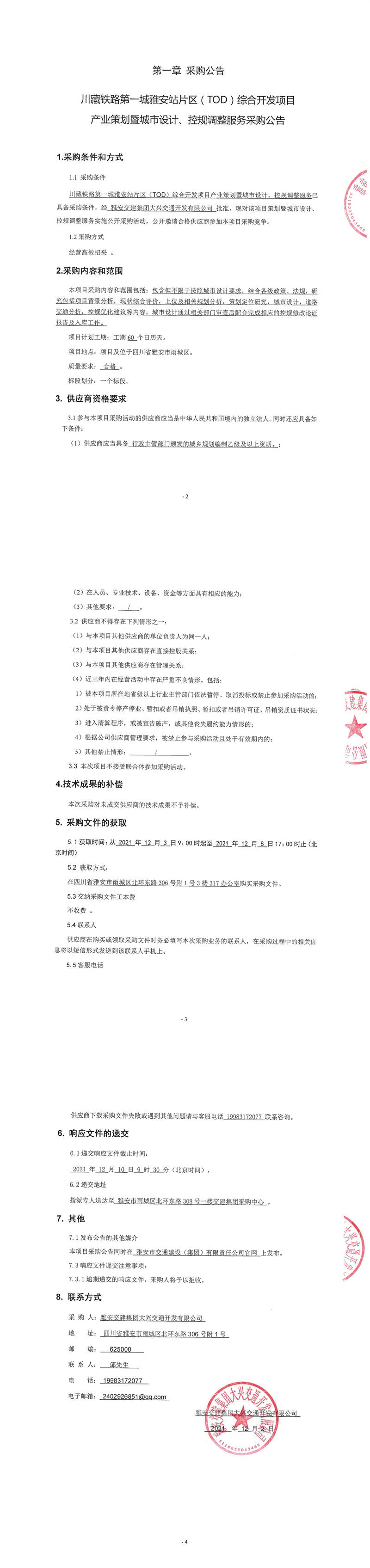 雅安交建集團(tuán)大興交通開發(fā)有限公司川藏鐵路第一城雅安站片區(qū)(TOD)綜合開發(fā)項(xiàng)目產(chǎn)業(yè)策劃暨城市設(shè)計(jì)、控規(guī)調(diào)整服務(wù)采購(gòu)公告
