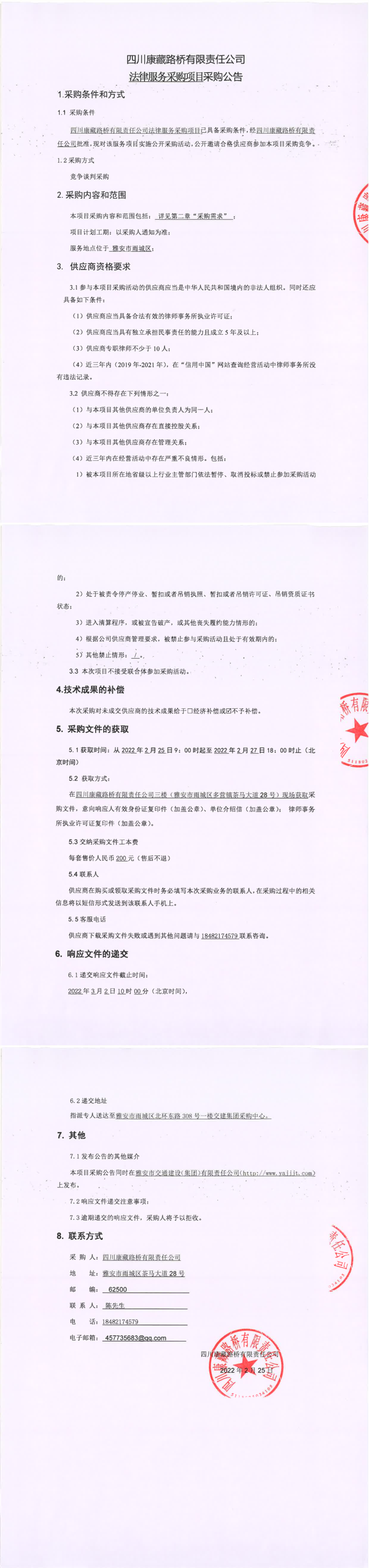 四川康藏路橋有限責任公司法律服務(wù)采購項目采購公告