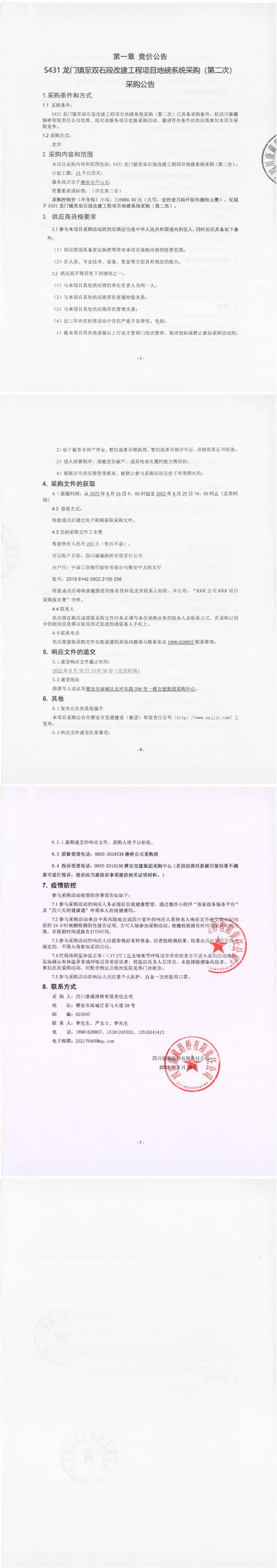 四川康藏路橋有限責(zé)任公司S431龍門(mén)鎮(zhèn)至雙石段改建工程項(xiàng)目地磅系統(tǒng)采購(gòu)(第二次)采購(gòu)公告