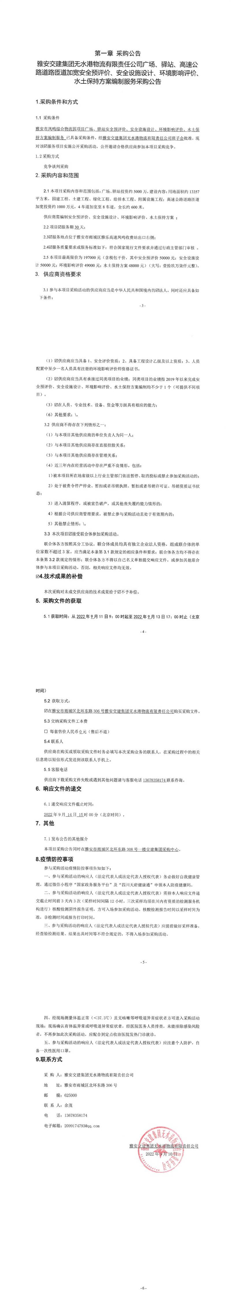 雅安交建集團無水港物流有限責(zé)任公司廣場、驛站、高速公路道路匝道加寬安全預(yù)評價、安全設(shè)施設(shè)計、環(huán)境影響評價、水土保持方案編制服務(wù)采購公告
