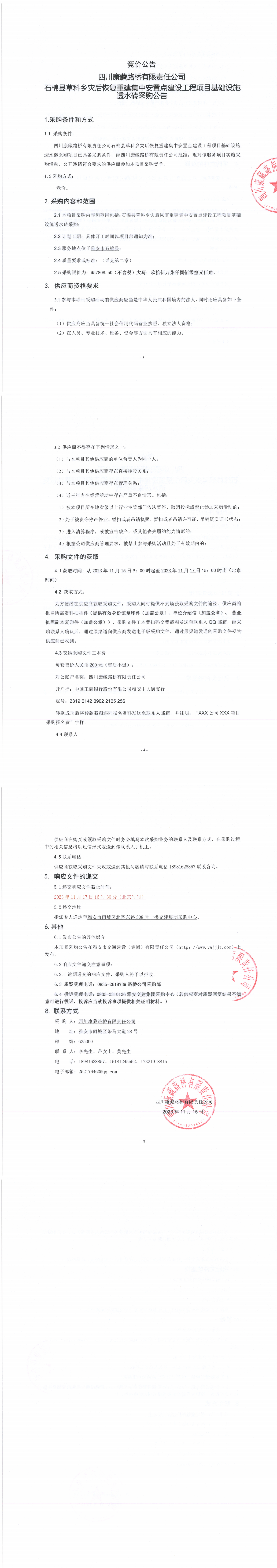 四川康藏路橋有限責(zé)任公司石棉縣X073兩河口至界碑石(甘孜界)災(zāi)后恢復(fù)重建工程項(xiàng)目路基路面輔助材料采購公告