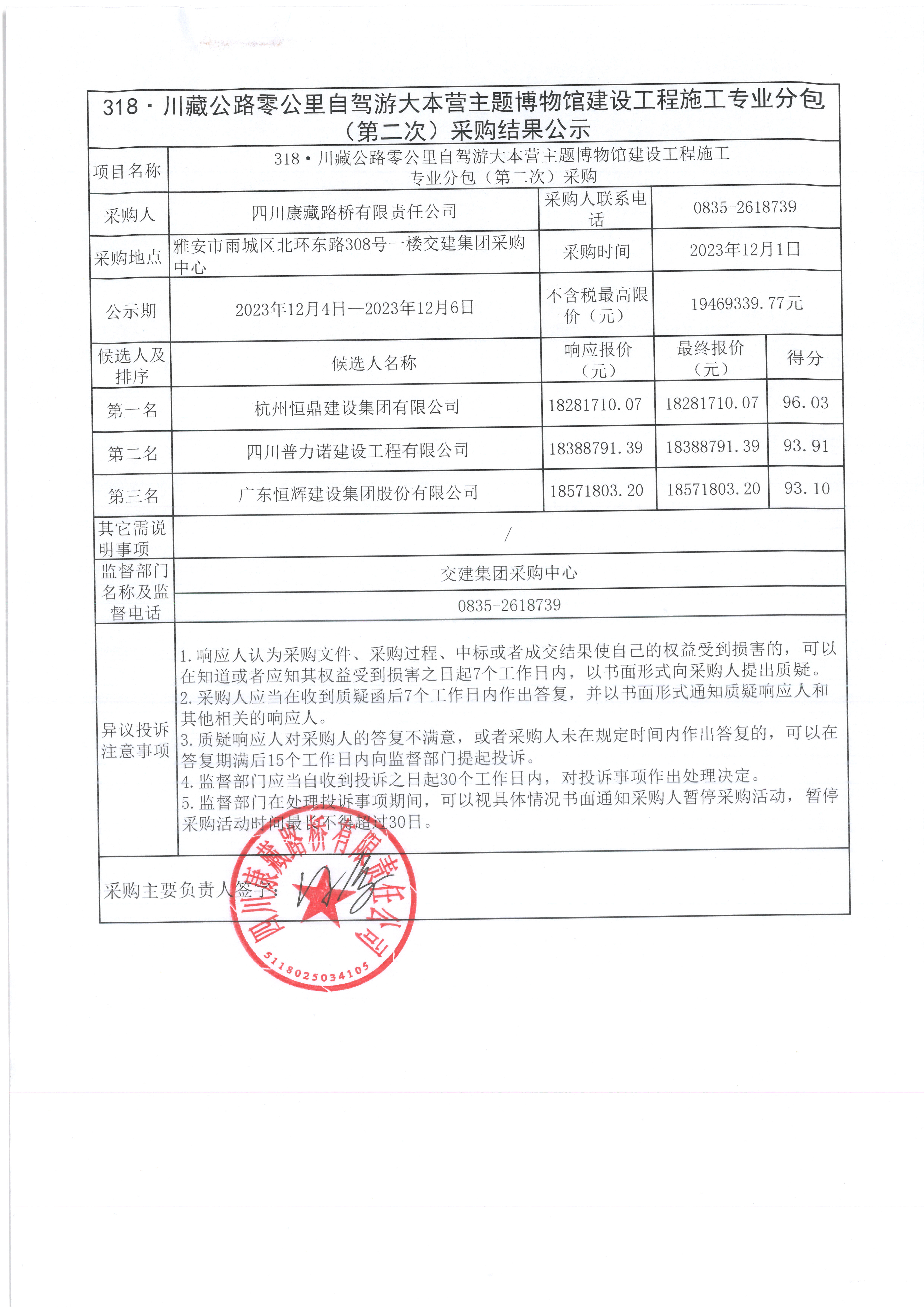 四川康藏路橋有限責(zé)任公司318·川藏公路零公里自駕游大本營主題博物館建設(shè)工程施工專業(yè)分包 (第二次)采購結(jié)果公示
