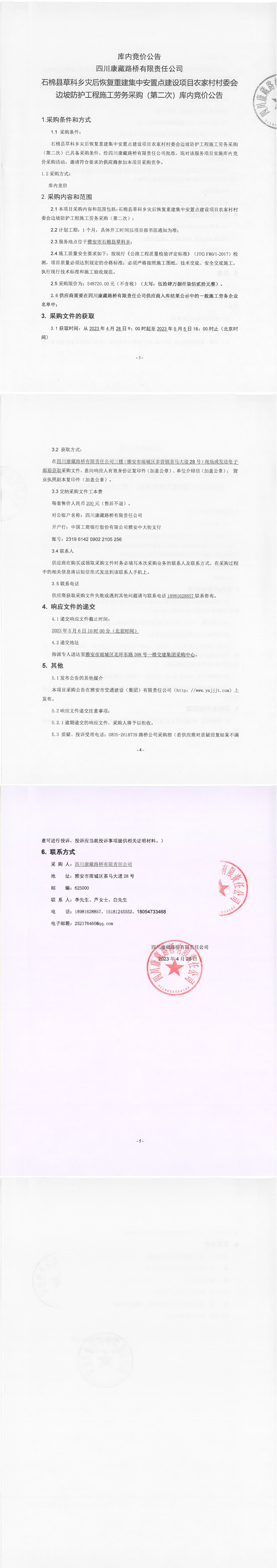 四川康藏路橋有限責(zé)任公司石棉草科鄉(xiāng)災(zāi)后恢復(fù)重建集中安置點(diǎn)建設(shè)項(xiàng)目農(nóng)家村村委會邊坡防護(hù)工程施工勞務(wù)采購(第二次)庫內(nèi)競價公告