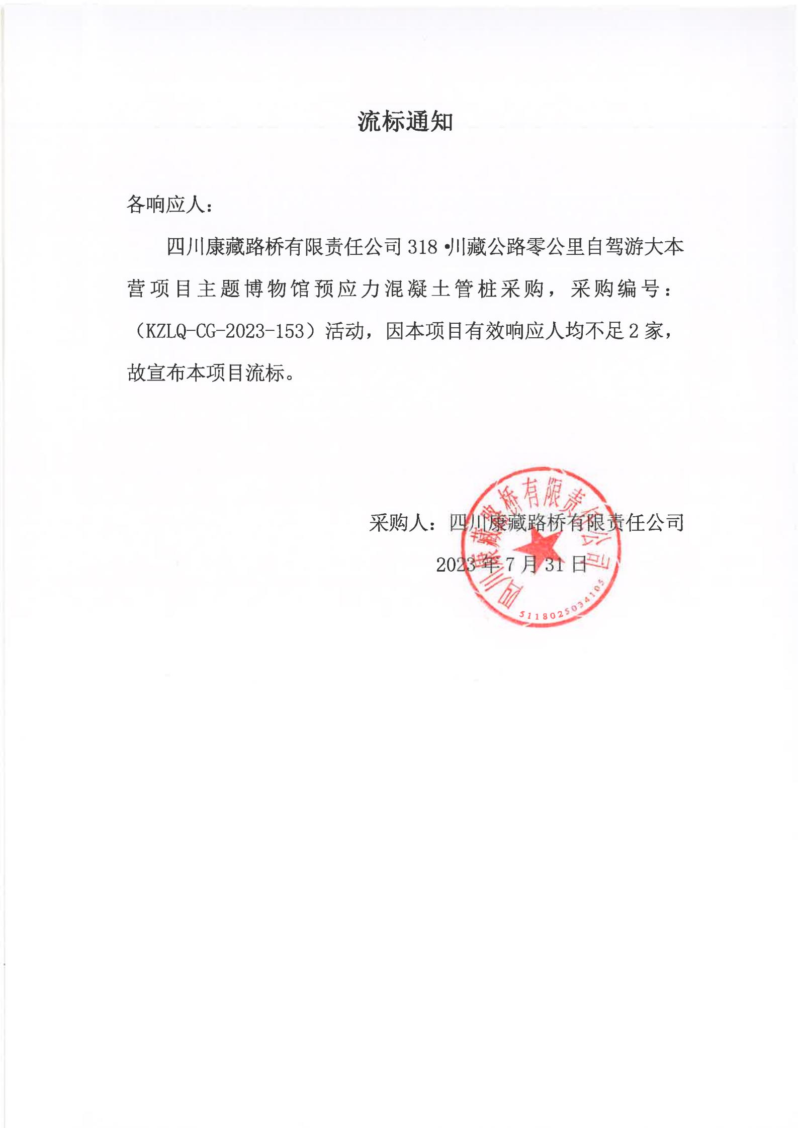 四川康藏路橋有限責任公司318·川藏公路零公里自駕游大本營項目主題博物館預(yù)應(yīng)力混凝土管樁采購流標通知