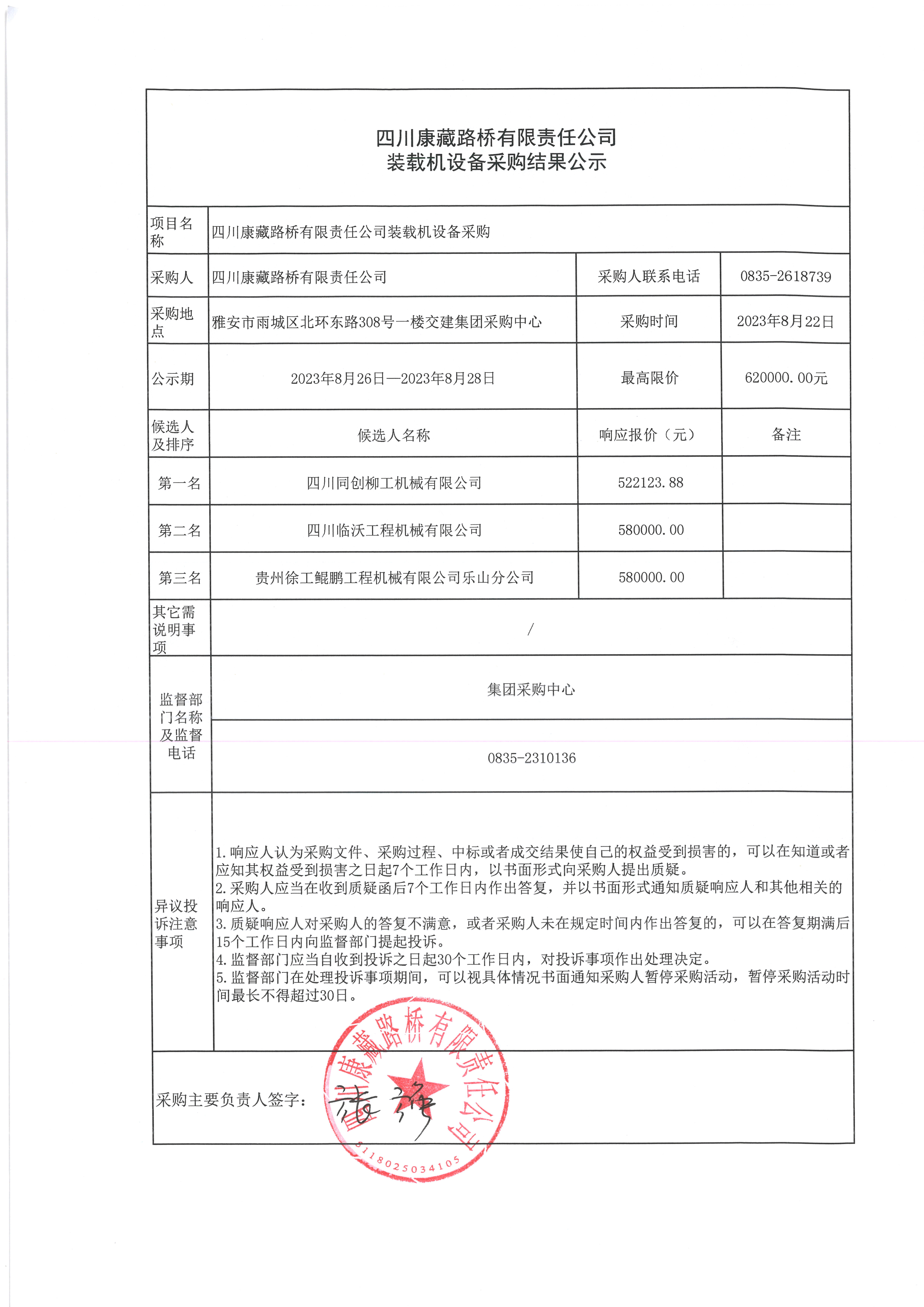 四川康藏路橋有限責任公司裝載機設(shè)備采購結(jié)果公示