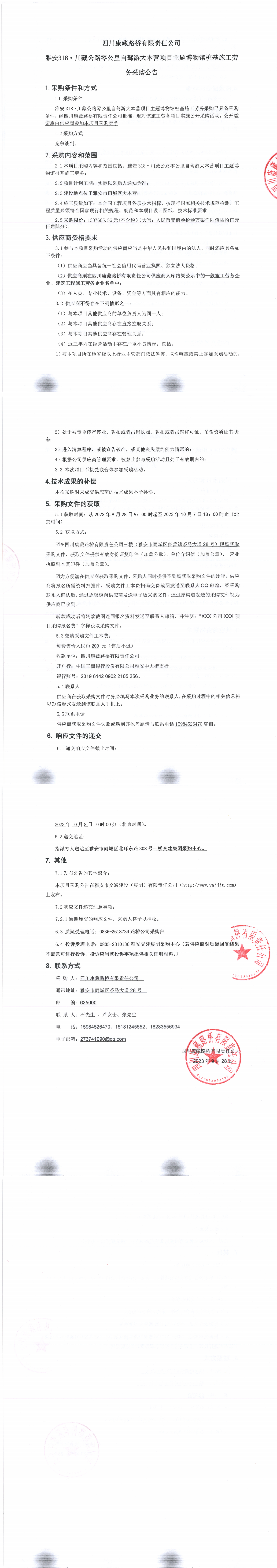 四川康藏路橋有限責(zé)任公司雅安318·川藏公路零公里自駕游大本營(yíng)項(xiàng)目主題博物館樁基施工勞務(wù)采購公告