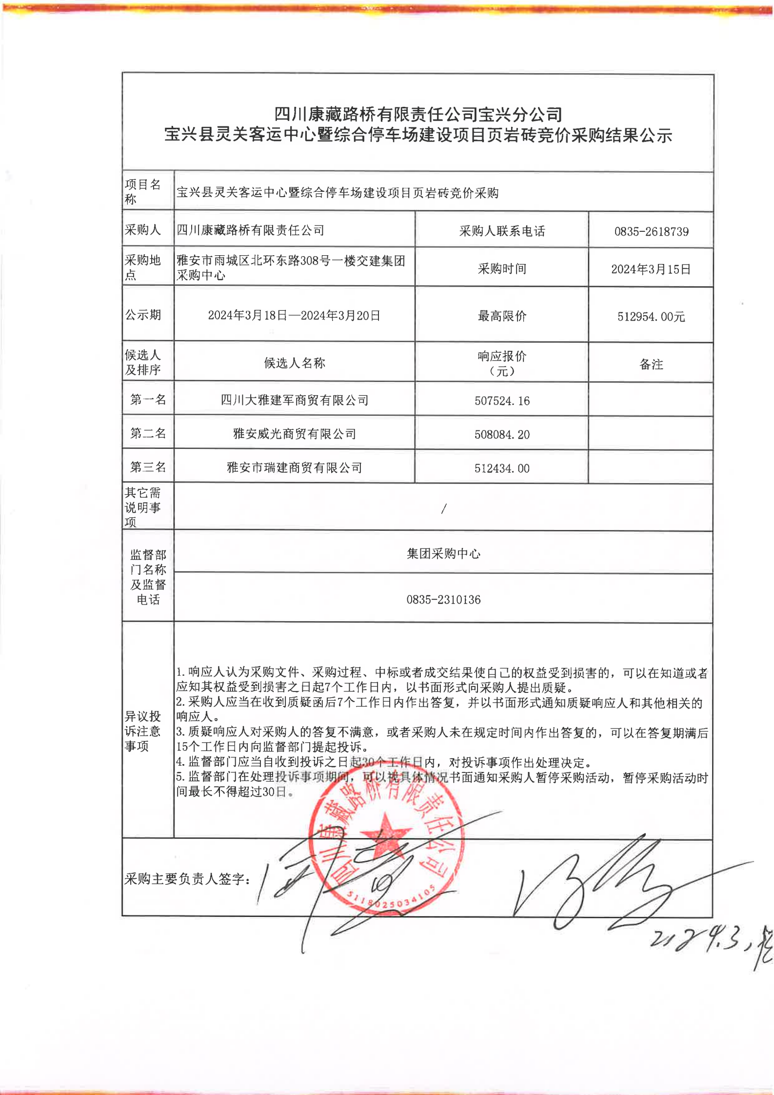 四川康藏路橋有限責(zé)任公司寶興分公司寶興縣靈關(guān)客運(yùn)中心暨綜合停車場(chǎng)建設(shè)項(xiàng)目頁(yè)巖磚競(jìng)價(jià)采購(gòu)結(jié)果公示