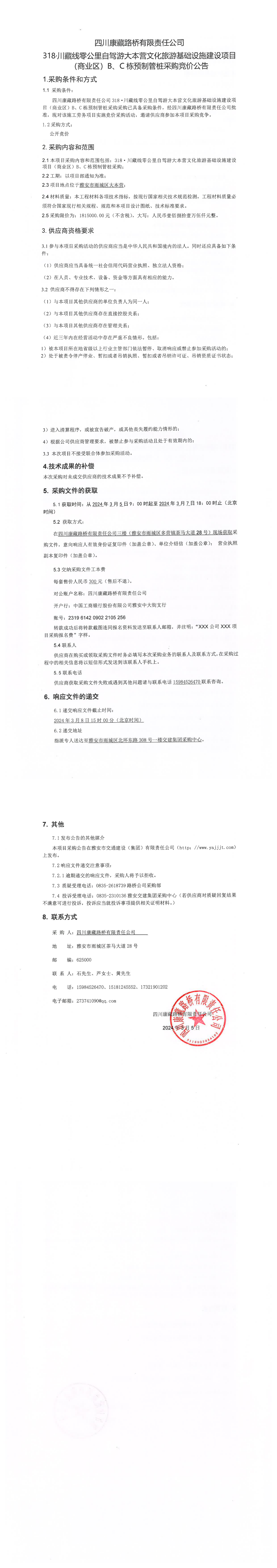 四川康藏路橋有限責(zé)任公司318·川藏公路零公里自駕游大本營(yíng)文化旅游基礎(chǔ)設(shè)施建設(shè)項(xiàng)目(商業(yè)區(qū))B\C棟預(yù)制管樁采購(gòu)競(jìng)價(jià)公告