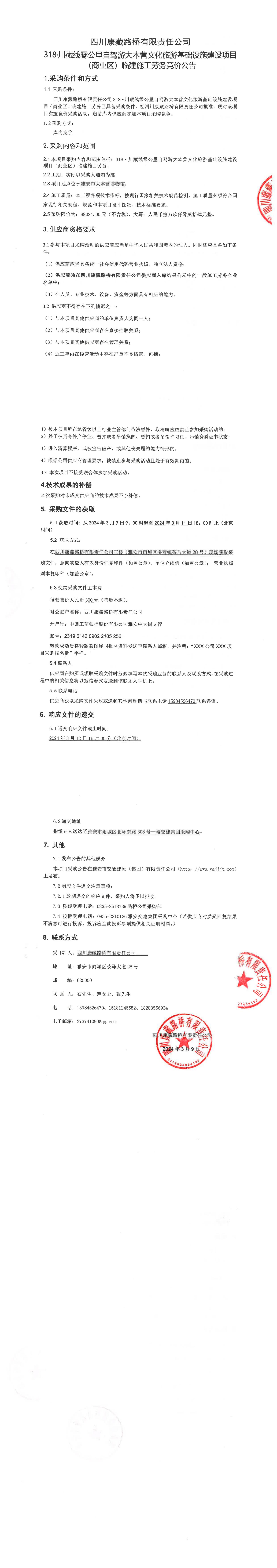 四川康藏路橋有限責(zé)任公司318·川藏線零公里自駕游大本營文化旅游基礎(chǔ)設(shè)施建設(shè)項目(商業(yè)區(qū))臨建施工勞務(wù)采購公告