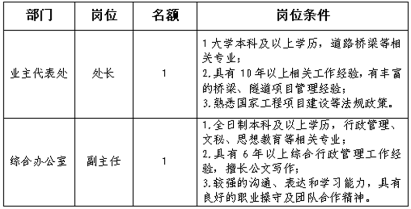 根據(jù)發(fā)展需要,決定面向社會公開招聘雅安市交通建設(集團)有限責任公司(以下簡稱“雅安交建集團”)所屬子公司相關人員2名,現(xiàn)將有關事項公告如下: