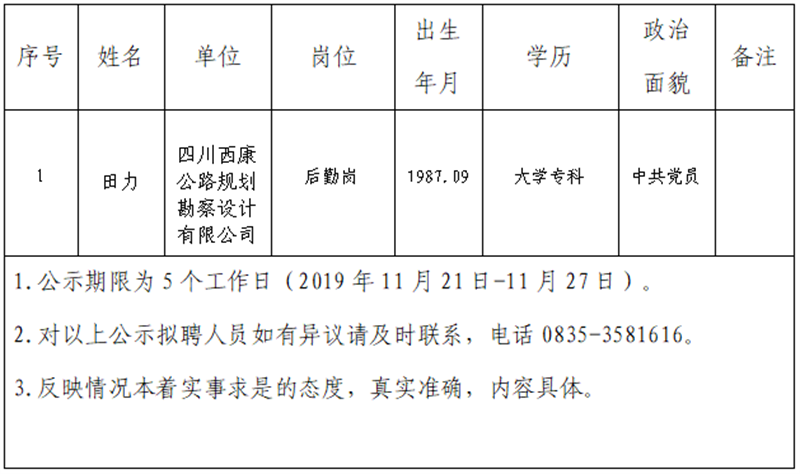 雅安交建集團子公司擬聘用人員公示(勘察設計公司)