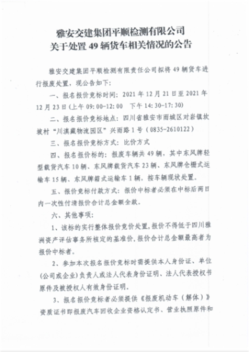 ÑŰ²½»½¨¼¯ˆF(tu¨¢n)ƽ혙zœyÓÐÏÞ¹«Ë¾ êP(gu¨¡n)ÓÚÌŽÖÃ49Ýv؛܇ÏàêP(gu¨¡n)Çé›rµÄ¹«¸æ