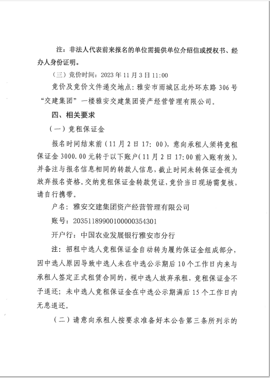 雅安交建集團(tuán)資產(chǎn)經(jīng)營管理有限公司 雨名快速通道(名山服務(wù)區(qū))3號(hào)樓商鋪招租公告