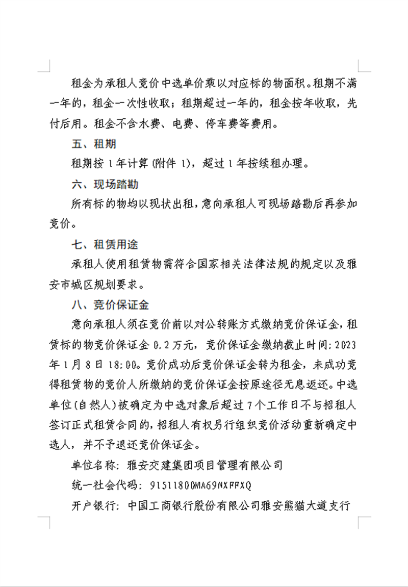 雅安交建集團項目管理有限公司 關(guān)于南郊鄉(xiāng)柳陽村可利用地塊公開招租的公告資料
