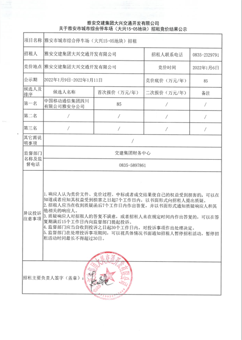 ´óÅdé_°l(f¨¡)¹«Ë¾êP(gu¨¡n)ÓÚÑŰ²ÊгÇÊоCºÏͣ܇ˆö£¨´óÅd15-05µØ‰K£©ÕÐ×⸂ƒr(ji¨¤)½Y(ji¨¦)¹ûµÄ¹«Ê¾