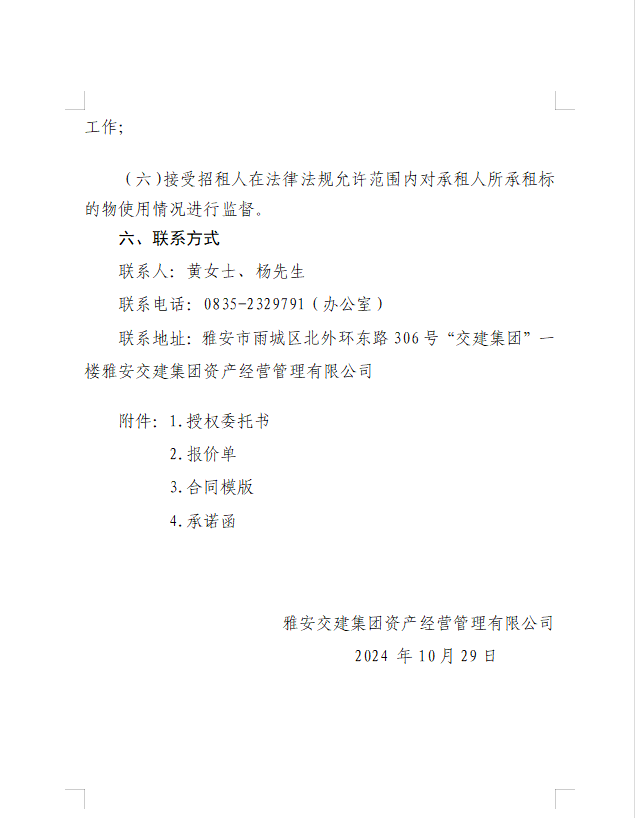 雅安交建集團資產(chǎn)經(jīng)營管理有限公司雨名快速通道(名山服務區(qū))1號樓配套用房招租公告