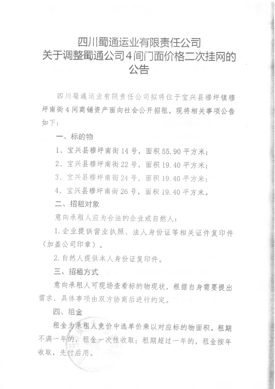 ËÄ´¨Êñͨß\˜I(y¨¨)ÓÐÏÞØŸÈι«Ë¾êPÓÚÕ{ÕûÊñͨ¹«Ë¾4égéTÃæƒr¸ñ¶þ´Î’ì¾W(w¨£ng)µÄ¹«¸æ