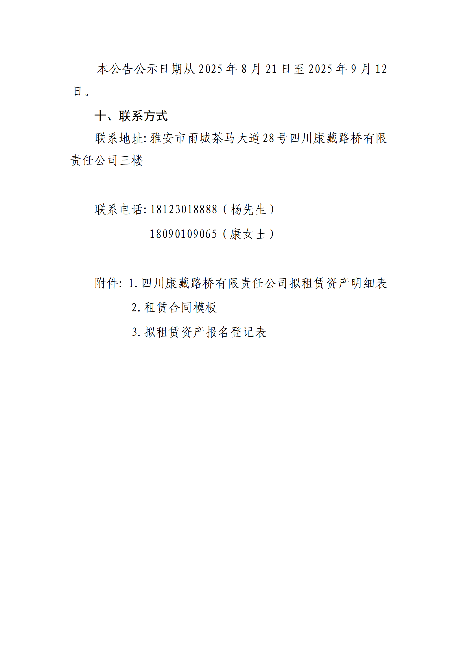 四川康藏路橋有限責任公司站前廣場資產(chǎn)招租公告